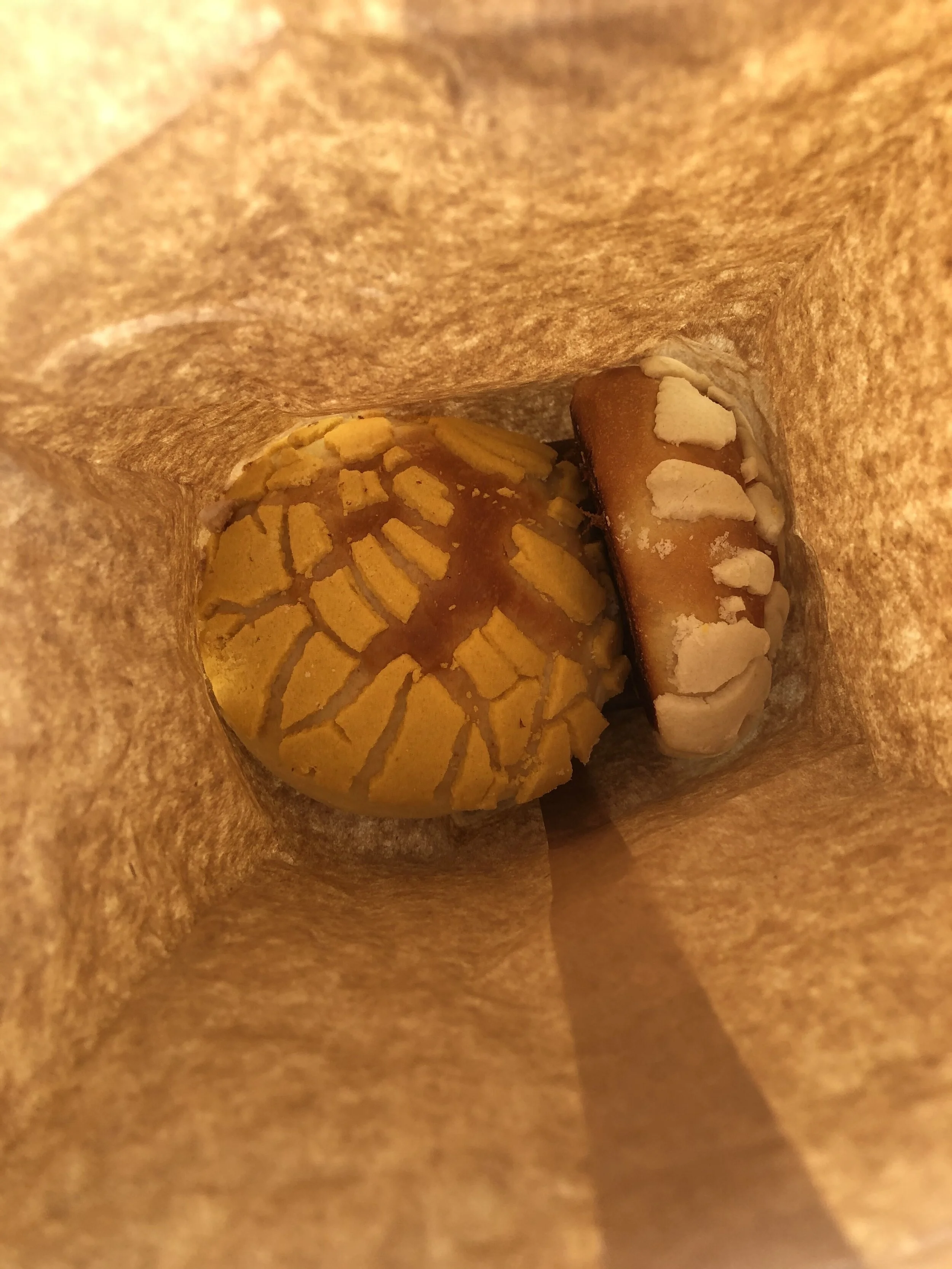 Concha sweetbread homemade by a local community member for quarantined workers.